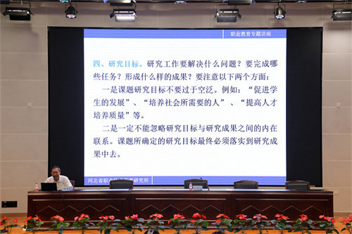 謝所長的講座主題為《職業(yè)教育教學(xué)改革研究項(xiàng)目設(shè)計(jì)、研究與轉(zhuǎn)化》,分別從什么是教育科學(xué)研究、應(yīng)當(dāng)重點(diǎn)關(guān)注的課題、職業(yè)教育教學(xué)改革項(xiàng)目設(shè)計(jì)、項(xiàng)目研究與解題、成果推廣與轉(zhuǎn)化五個(gè)方面做了詳細(xì)的闡述。講座信息量大,內(nèi)容豐富,結(jié)合了課題研究過程中的常見問題,解決了老師們?cè)谡n題研究中的困惑。