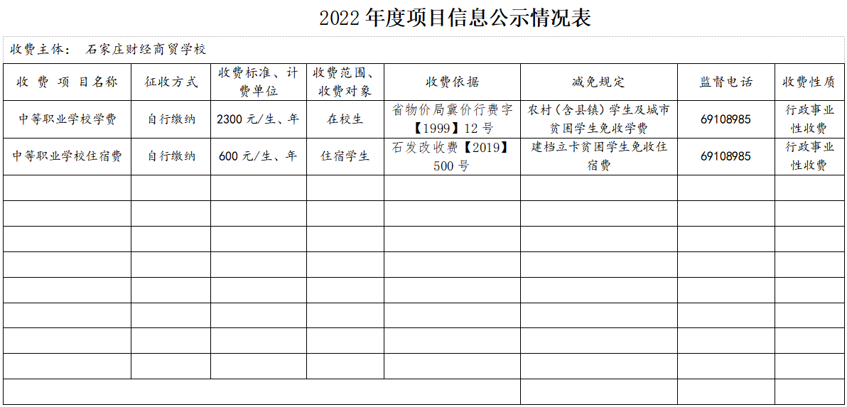 2022年度收費(fèi)項(xiàng)目信息公示情況表