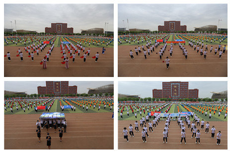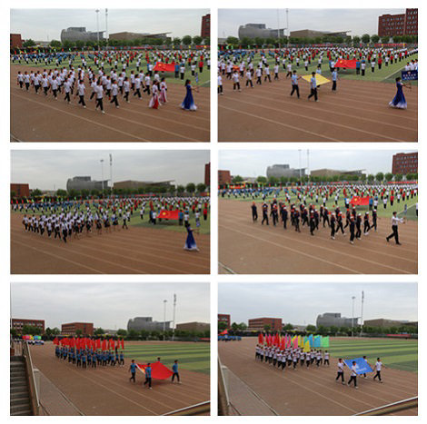 精彩的入場(chǎng)式之后是莊嚴(yán)的升國(guó)旗儀式,全體師生齊唱國(guó)歌。