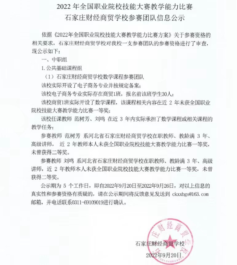 2022年全國職業(yè)院校技能大賽教學(xué)能力比賽參賽團(tuán)隊信息公示