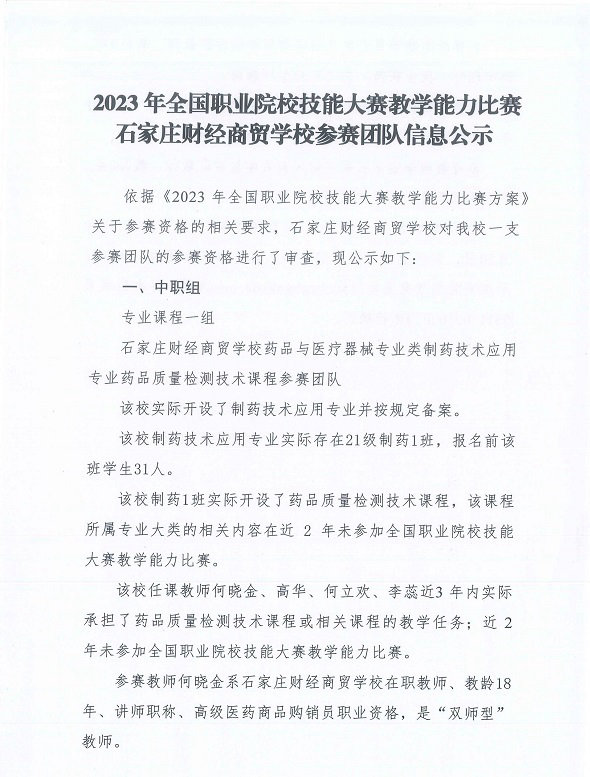 2023年全國職業(yè)院校技能大賽教學(xué)能力比賽 石家莊財經(jīng)商貿(mào)學(xué)校參賽團隊信息公示