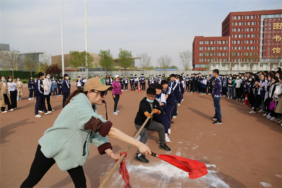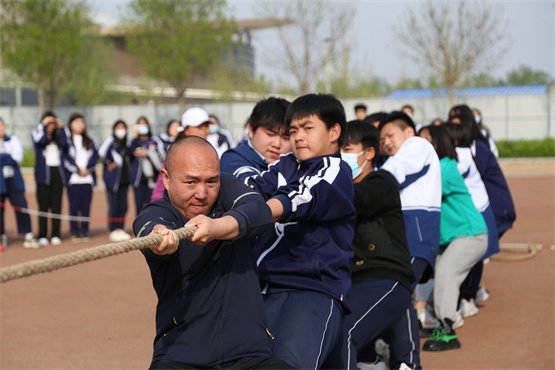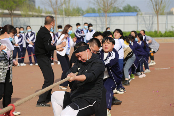 在此起彼伏的加油聲中,精彩的拔河比賽開始了。裁判一聲令下,雙方隊員都傾盡全力,“一二、一二……”一根小小的繩子,傳遞了力量,演繹著奮斗和拼搏的精神……