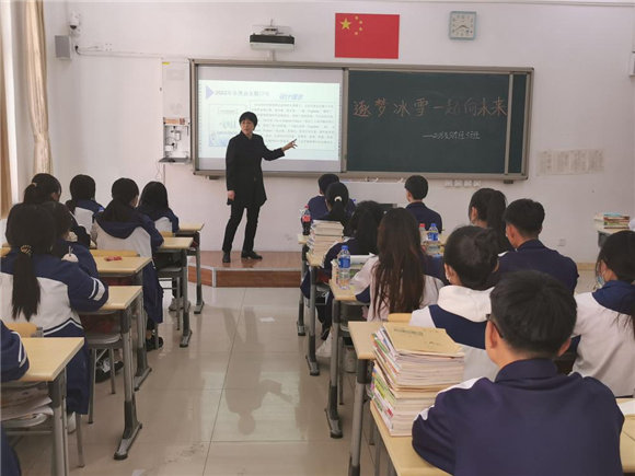 班主任老師們從弘揚(yáng)冬奧精神、回顧中國(guó)參與冬奧歷程、博覽本屆奧運(yùn)健兒風(fēng)采、新學(xué)期新征程及常態(tài)化疫情防控等五個(gè)方面召開(kāi)班會(huì),上好開(kāi)學(xué)第一課。鼓勵(lì)同學(xué)們以新學(xué)期為契機(jī),以?shī)W運(yùn)健兒和志愿者等新時(shí)代奮進(jìn)者群像為楷模,以飽滿的熱情、昂揚(yáng)的斗志迎接一切挑戰(zhàn),做到眼中有光芒,肩上有擔(dān)當(dāng),心中有理想,腳下有力量,珍惜韶華,永做時(shí)代的奮進(jìn)者、開(kāi)拓者。