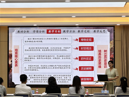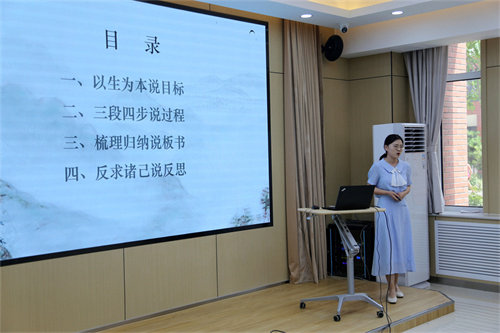 決賽階段,教師們從教材分析、學(xué)情分析、教法學(xué)法、教學(xué)過程、教學(xué)反思等多方面入手,運用多樣的信息化教學(xué)手段,設(shè)計新穎的課堂活動,全面闡述說課內(nèi)容,充分展示了我校教師扎實的教學(xué)基本功以及高超的教材駕馭能力。