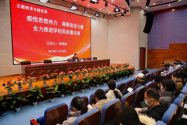 按照學(xué)校主題教育安排,11月28日下午,黨委書記梁建國同志以“感悟思想偉力,凝聚奮進(jìn)力量,全力推進(jìn)學(xué)校高質(zhì)量發(fā)展”為主題為全體黨員講專題黨課。