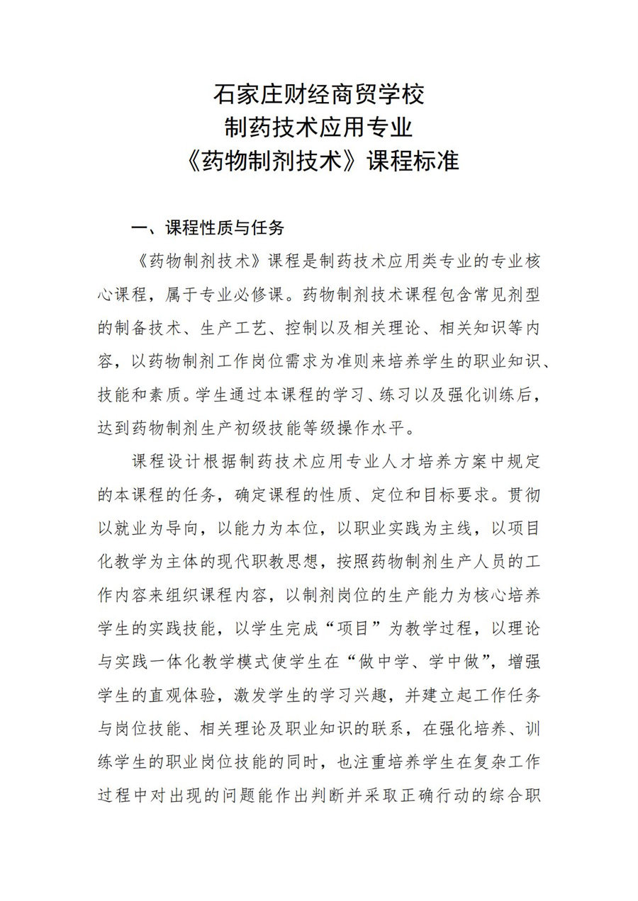 《藥物制劑技術(shù)》課程標(biāo)準(zhǔn)