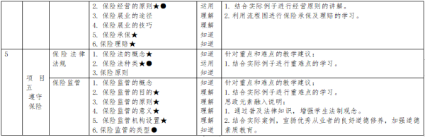 1.校內(nèi)專職教師要求具有金融專業(yè)相關(guān)背景,具備“雙師型”教師資格,掌握保險(xiǎn)行業(yè)基礎(chǔ)理論知識(shí),善于學(xué)習(xí),不斷更新知識(shí)儲(chǔ)備。