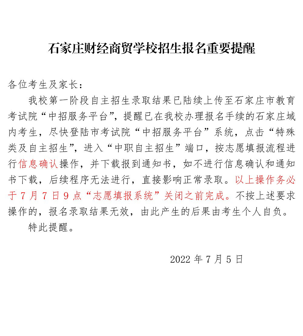 石家莊財(cái)經(jīng)商貿(mào)學(xué)校招生報(bào)名重要提醒
