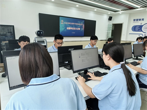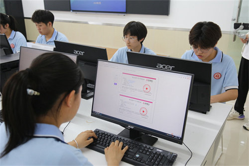 經(jīng)過前期預(yù)賽的嚴(yán)格篩選,22級財經(jīng)6-7班和23級財經(jīng)6-7班共有24名佼佼者脫穎而出,參與到這場限時20分鐘的技能比拼中。此賽項重點檢驗選手們在銀行、保險及證券等領(lǐng)域單證高效錄入的能力。賽場上,選手們?nèi)褙炞?,手指在鍵盤上飛舞,每一下敲擊都承載著他們對專業(yè)知識的掌握與實踐技能的自信。緊張而有序的氛圍中,他們爭分奪秒,不僅展現(xiàn)著對各類金融單證格式與內(nèi)容的精準(zhǔn)理解,還體現(xiàn)了在高強(qiáng)度壓力下保持高效工作的能力。監(jiān)考老師則穿梭于賽場之間,一絲不茍地監(jiān)督著比賽進(jìn)程,確保比賽公平公正。
