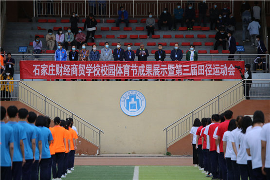 暮春四月, 芳菲滿園,樂曲高奏,彩旗飄揚(yáng)。4月27日,石家莊財(cái)經(jīng)商貿(mào)學(xué)校校園體育節(jié)成果展示暨第三屆田徑運(yùn)動(dòng)會(huì)在學(xué)校田徑運(yùn)動(dòng)場(chǎng)隆重開幕。