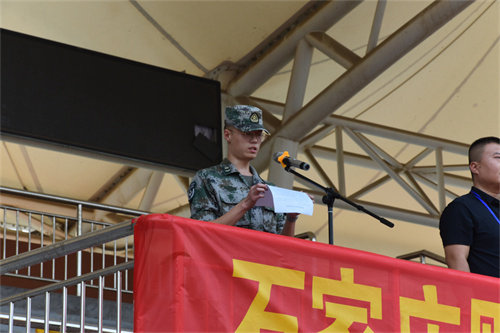 鮮衣怒馬少年時,不負(fù)韶華行且知。新生代表2023級財經(jīng)1班靳嘉鑫同學(xué)發(fā)言。她說,軍訓(xùn)不僅有利于培養(yǎng)我們堅強(qiáng)的毅力、不怕困難、敢于拼搏的精神,而且還會讓我們明白團(tuán)隊精神與規(guī)范意識的重要性。我們一定以軍人的標(biāo)準(zhǔn)嚴(yán)格要求自己,克服嬌氣,努力培養(yǎng)自己吃苦耐勞的意志品質(zhì)。