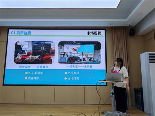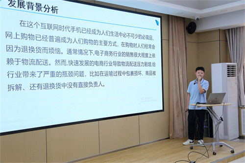 決賽階段,參賽團(tuán)隊(duì)各顯神通。每個(gè)項(xiàng)目團(tuán)隊(duì)選派1-2人進(jìn)行路演展示,從項(xiàng)目背景分析、實(shí)際策劃、客戶運(yùn)營(yíng)、團(tuán)隊(duì)建設(shè)等方面對(duì)各自項(xiàng)目進(jìn)行闡述,展示了創(chuàng)意思路和創(chuàng)新成果。各參賽隊(duì)制作了詳細(xì)精美的幻燈片,輔以富有激情的匯報(bào)展示,充分體現(xiàn)了我校學(xué)生綜合素質(zhì)的風(fēng)采。