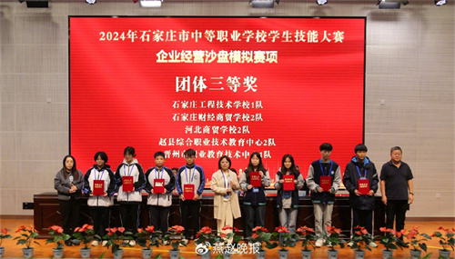 經(jīng)過激烈的競爭,最終,石家莊財經(jīng)商貿(mào)學(xué)校1隊(duì)獲得團(tuán)體一等獎;石家莊財經(jīng)商貿(mào)學(xué)校2隊(duì)獲得團(tuán)體二等獎; 趙縣慶陽綜合職業(yè)技術(shù)教育中心1隊(duì)、趙縣慶陽綜合職業(yè)技術(shù)教育中心2隊(duì)獲得團(tuán)體三等獎。