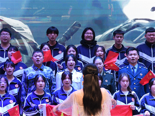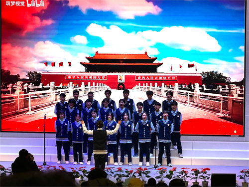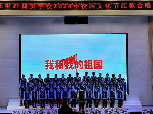 決賽現(xiàn)場,財(cái)貿(mào)禮堂內(nèi)洋溢著濃厚的紅色氛圍。來自學(xué)校三個(gè)專業(yè)部十五個(gè)班級的同學(xué)們衣著整齊,按照比賽順序依次走上舞臺。精神抖擻的他們用充滿激情的歌聲,表達(dá)著對祖國的熱愛。從《強(qiáng)軍戰(zhàn)歌》的激昂斗志,到《歌唱祖國》的豪邁情懷,再到《我和我的祖國》的深情厚誼,每一句歌詞都表達(dá)了參賽者對祖國的熱愛和祝福。比賽過程中,觀眾掌聲雷動(dòng),氣氛熱烈而莊重。