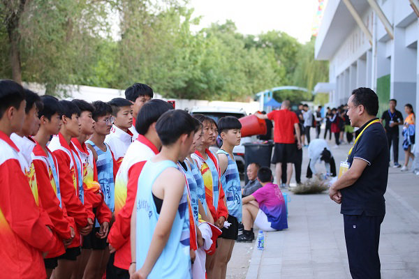 校長(zhǎng)梁建國(guó)為運(yùn)動(dòng)員加油鼓勁