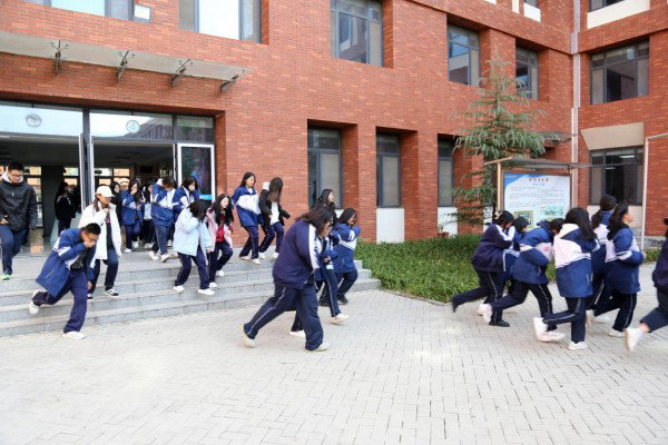11月7日下午,石家莊財經(jīng)商貿(mào)學(xué)校組織開展了消防應(yīng)急疏散演練?;鹎榫瘓箜懫?,財經(jīng)專業(yè)部近千名學(xué)生在老師指引下,用衣物遮住口鼻,俯身沿樓道安全疏散指示標(biāo)識有序撤離教室,按照預(yù)定方案到達(dá)校園中心廣場。