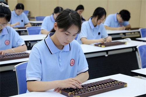 珠算模塊,選手按照組委會(huì)提供的珠算賽題,進(jìn)行賬表題目計(jì)算,并將每題的結(jié)果填入表格中。一聲令下,選手們隨即撥動(dòng)算珠,指法靈活,有條不紊。伴隨著敲擊算珠的清脆聲,選手們冷靜專注,動(dòng)作規(guī)范,充分展示了同學(xué)們珠算的嫻熟技能,也體現(xiàn)了這一古老文明的現(xiàn)代魅力。