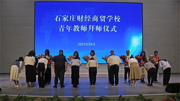 云天收夏色,木葉動(dòng)秋生。2023年9月28日,石家莊財(cái)經(jīng)商貿(mào)學(xué)校青年教師拜師儀式在財(cái)貿(mào)禮堂隆重舉辦。師徒結(jié)對(duì)一直是我校踐行的優(yōu)良傳統(tǒng),目的是充分發(fā)揮學(xué)科帶頭人、骨干教師、高級(jí)職稱教師“傳幫帶”的模范作用,加快對(duì)青年教師的培養(yǎng),使他們真正地融入石家莊財(cái)經(jīng)商貿(mào)學(xué)校的教師隊(duì)伍。本次拜師儀式分為“青年教師拜師”和“教學(xué)能力比賽獲獎(jiǎng)教師培訓(xùn)分享”兩個(gè)部分。校領(lǐng)導(dǎo)孟志發(fā)、袁凌華出席了本次儀式,全校教職工參加。