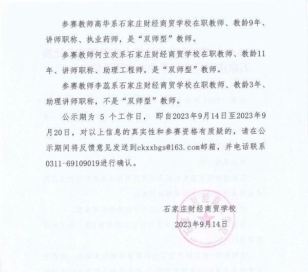 2023年全國職業(yè)院校技能大賽教學(xué)能力比賽 石家莊財經(jīng)商貿(mào)學(xué)校參賽團隊信息公示