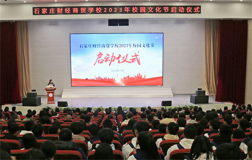 11月15日,石家莊財經(jīng)商貿(mào)學校2023年校園文化節(jié)啟動儀式在學校財貿(mào)禮堂隆重舉行,校領導出席,全體教師和學生代表參加了活動。