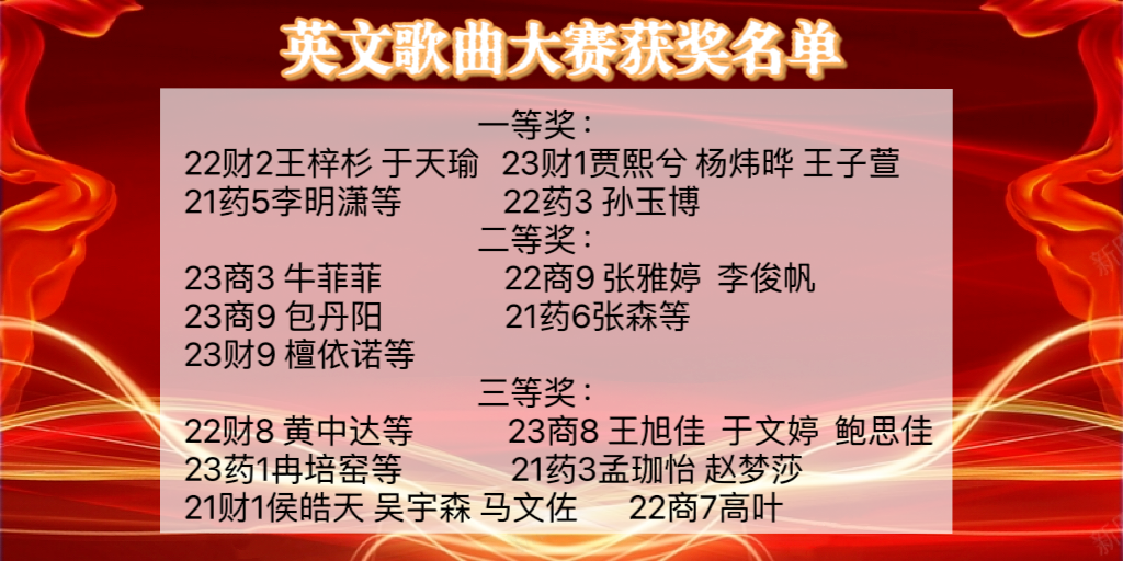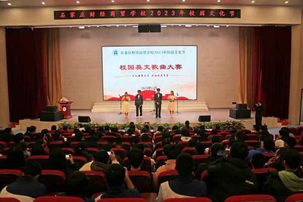 為提高學(xué)生英語(yǔ)學(xué)習(xí)興趣,進(jìn)一步營(yíng)造濃厚的英語(yǔ)學(xué)習(xí)氛圍,石家莊財(cái)經(jīng)商貿(mào)學(xué)校2023年校園文化節(jié)——校園英文歌曲大賽于12月15日在學(xué)校財(cái)貿(mào)禮堂隆重舉行。