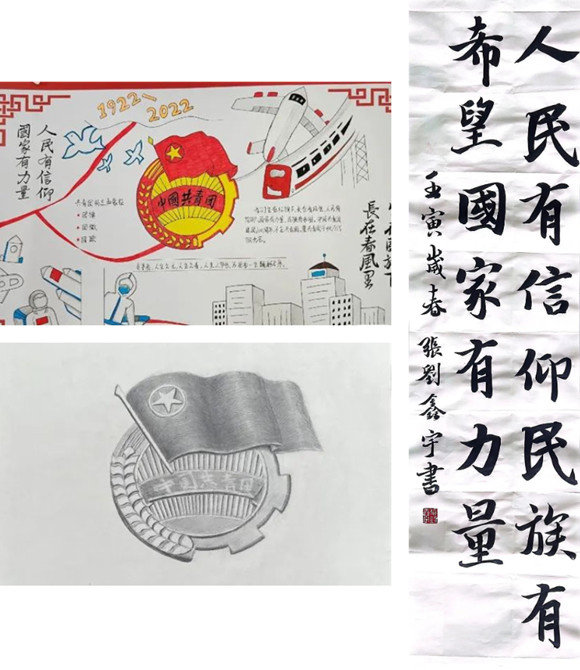 學(xué)生們執(zhí)筆揮毫,以小見大,視角獨特,以真摯的情感,生動的作品向我們展示了他們對建團百年的期待和盼望。一撇一捺,書寫了財經(jīng)學(xué)子對建團百年的真摯祝福,一筆一畫,描繪了青年學(xué)生對中華美好未來的憧憬之情。