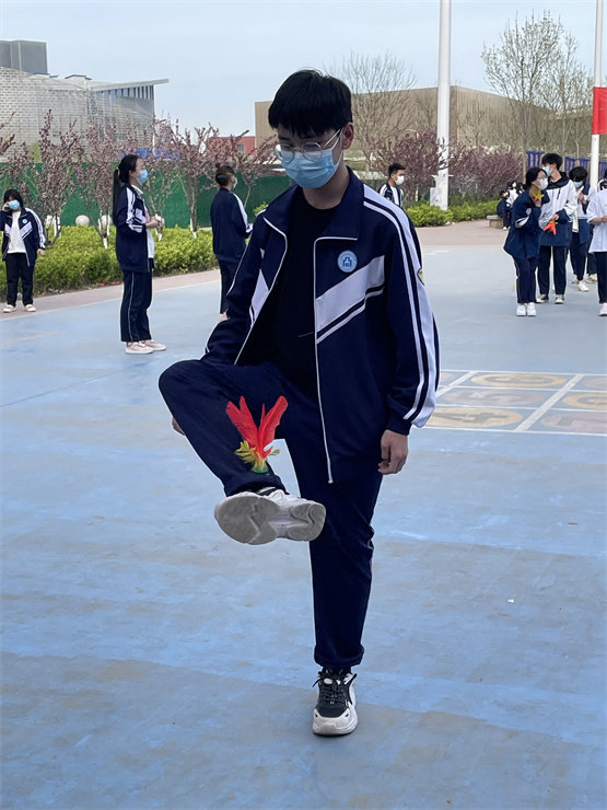 踢毽子比賽的現(xiàn)場,氣氛熱鬧而激烈,同學們動作嫻熟,毽子在靈活的雙腳上跳躍著。