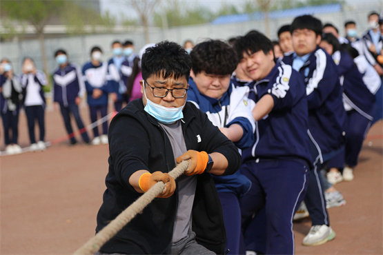 在此起彼伏的加油聲中,精彩的拔河比賽開始了。裁判一聲令下,雙方隊員都傾盡全力,“一二、一二……”一根小小的繩子,傳遞了力量,演繹著奮斗和拼搏的精神……