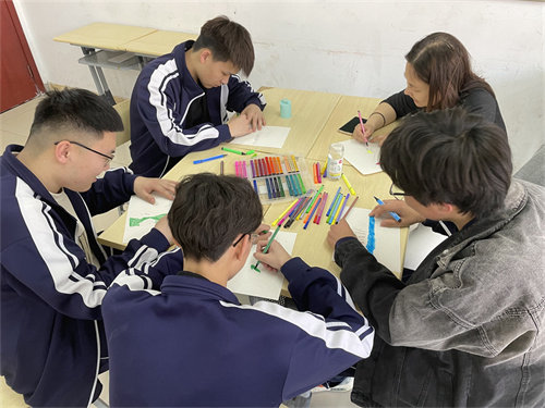 教室、辦公室里,師生運用手中的畫筆一起創(chuàng)作和交流。他們描繪著心中美好的畫卷,并將這份美好相互贈送,把愛和美的種子播撒在學生心田。