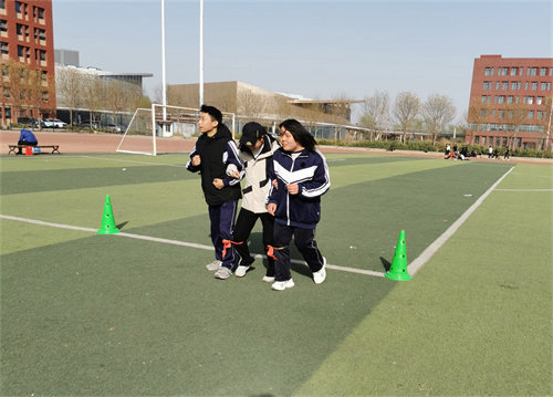 操場上,師生進行兩人三足的活動。隨著一聲令下,他們互相挽著胳膊,齊心協(xié)力,整齊有序地沖向終點;籃球館里,師生定點投籃,交流互動。現(xiàn)場其樂融融,師生之間的感情也在合作比賽中得以升華。