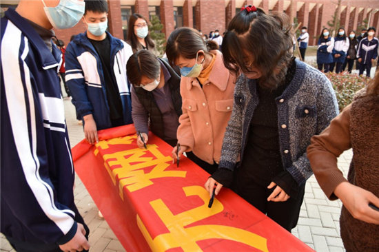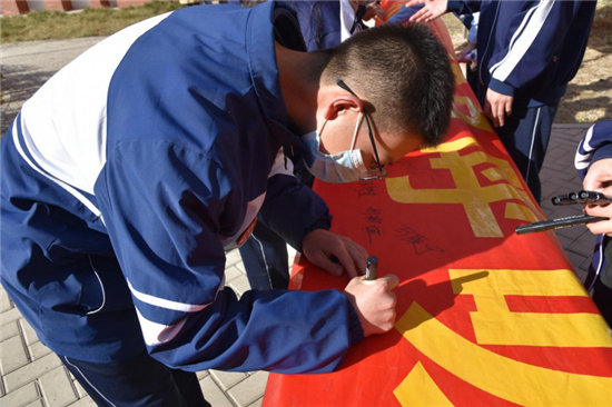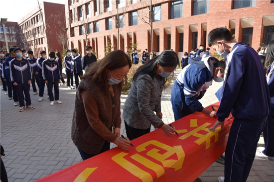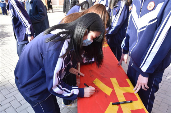 會(huì)后,千余名同學(xué)按照防控要求有序在“珍愛生命,綠色呼吸,共創(chuàng)無煙校園”的倡議條幅上簽上了自己的名字。
