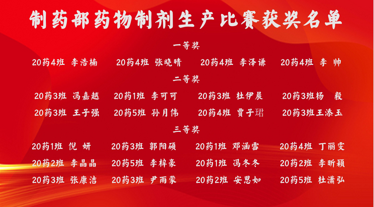 附:藥物制劑生產(chǎn)技能比賽獲獎(jiǎng)名單
