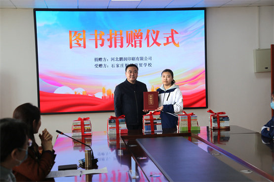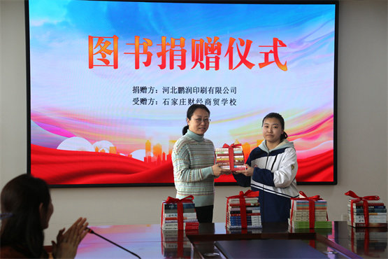 2月24日,石家莊財經(jīng)商貿(mào)學校舉行了圖書受贈儀式,河北鵬潤印刷公司向?qū)W校捐贈了600余冊圖書。校長梁建國、教務科主任任蕊與師生代表共同參加了受贈儀式。