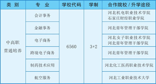 2023年,我校會計事務(wù)、電子商務(wù)、制藥技術(shù)應(yīng)用、跨境電子商務(wù)、航空服務(wù)、金融事務(wù)等6個省級骨干、特色專業(yè)與河北工業(yè)職業(yè)技術(shù)大學(xué)、河北化工醫(yī)藥職業(yè)技術(shù)學(xué)院、河北女子職業(yè)技術(shù)學(xué)院等6所省內(nèi)優(yōu)質(zhì)高職院校開展“3+2”中高貫通培養(yǎng),招生規(guī)模大幅提升。我校錄取的“3+2”新生平均分超過省統(tǒng)一控制線150分以上,生源質(zhì)量得到合作高校的一致好評。