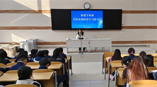 在春意盎然的季節(jié)里,石家莊財(cái)經(jīng)商貿(mào)學(xué)校商貿(mào)專業(yè)部為即將參加單招考試的學(xué)生們精心籌備了一場(chǎng)沖刺階段學(xué)習(xí)指導(dǎo)會(huì),旨在為學(xué)生們提供一次全面、系統(tǒng)且高效的備考輔導(dǎo)。