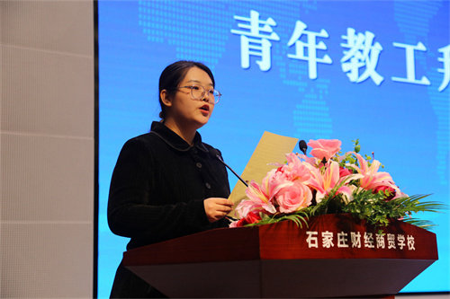 陸紅綱副校長(zhǎng)宣讀《石家莊財(cái)經(jīng)商貿(mào)學(xué)校“青藍(lán)工程”實(shí)施方案》,明確了青年教師的培養(yǎng)目標(biāo)和指導(dǎo)教師與青年教師各自的職責(zé)。