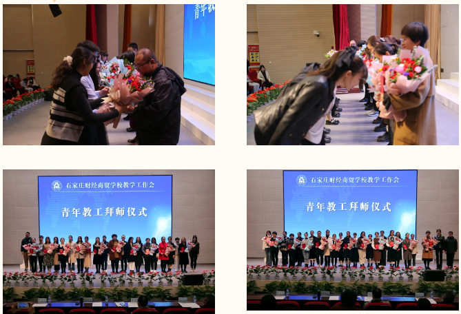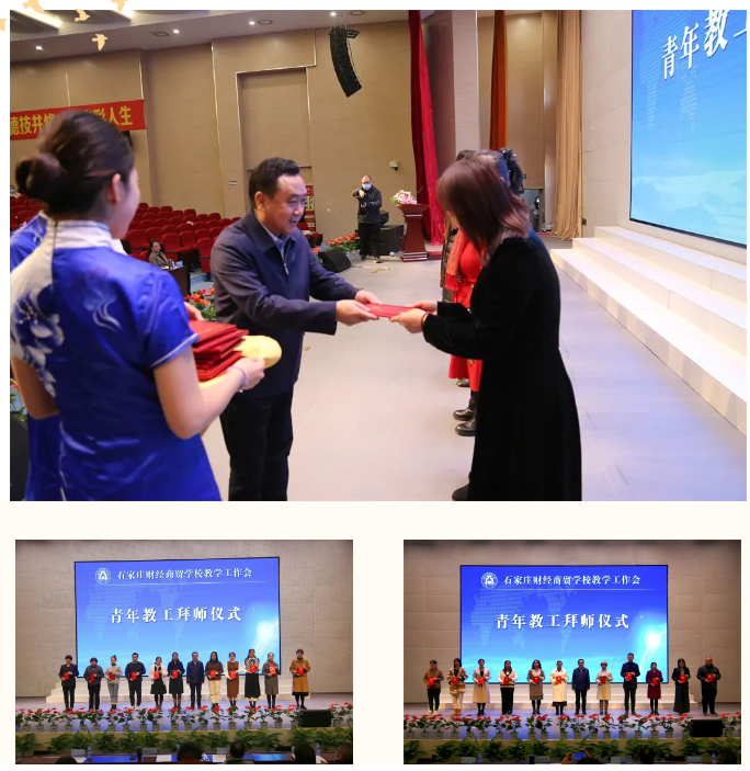 大會(huì)的第二項(xiàng)議程為“青年教工拜師儀式”。青年教工拜師一直是學(xué)校的優(yōu)良傳統(tǒng),目的是促進(jìn)青年教師盡快成長(zhǎng),使他們真正的融入石家莊財(cái)經(jīng)商貿(mào)學(xué)校教師隊(duì)伍,成為優(yōu)秀的財(cái)貿(mào)人。
