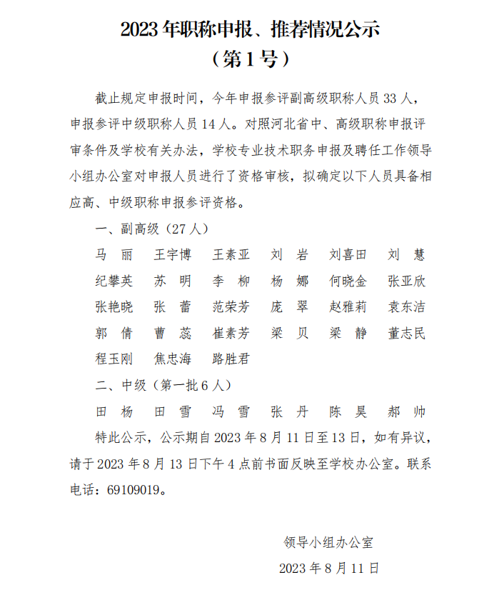 2023年職稱申報、推薦情況公示(第1號)