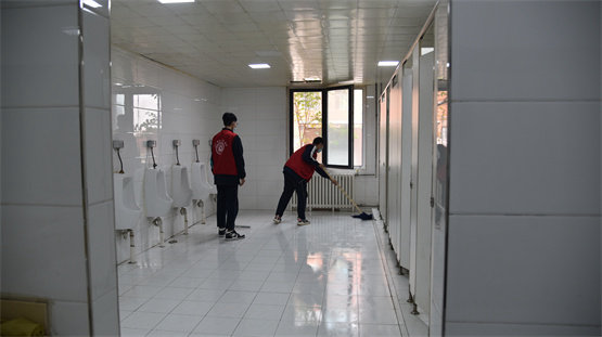 同學(xué)們團(tuán)結(jié)協(xié)作,認(rèn)真負(fù)責(zé),不怕苦不怕累,把教學(xué)樓打掃地窗明幾亮,地面一塵不染,衛(wèi)生間無(wú)死角,無(wú)異味,衛(wèi)生區(qū)無(wú)煙頭紙屑。