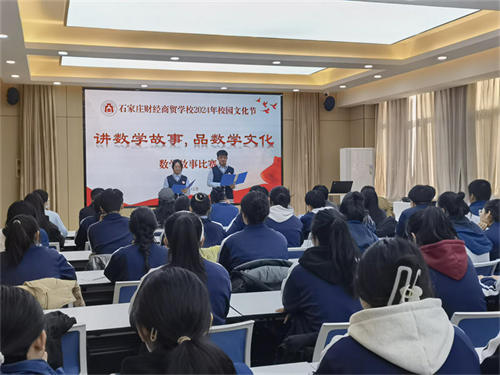 為豐富學(xué)生的校園文化生活,讓學(xué)生感受數(shù)學(xué)的趣味與神奇,了解數(shù)學(xué)豐富的內(nèi)涵和文化底蘊(yùn),12月17日,石家莊財(cái)經(jīng)商貿(mào)學(xué)校校園文化節(jié)數(shù)學(xué)故事比賽決賽在財(cái)經(jīng)部立才廳舉行。