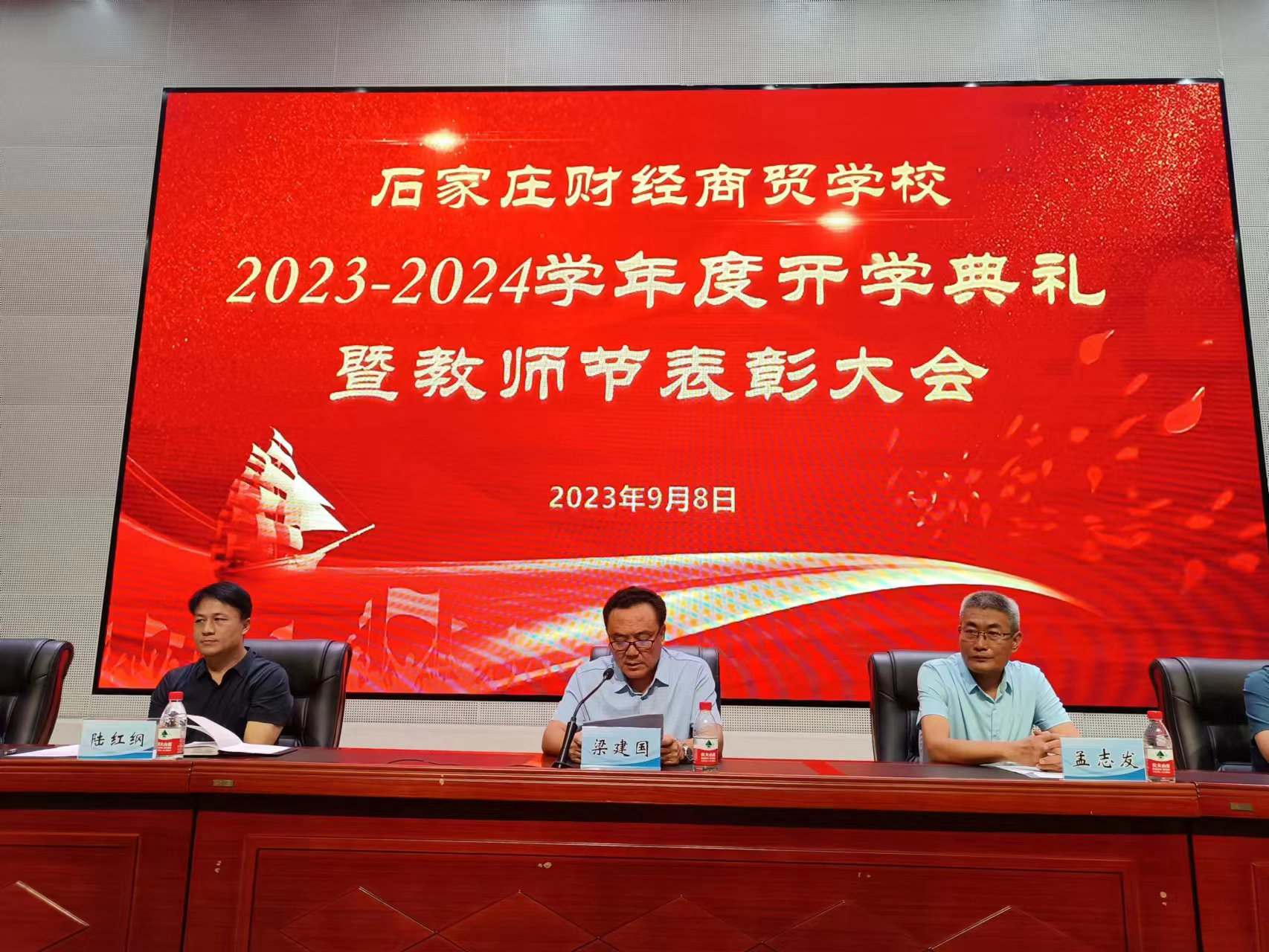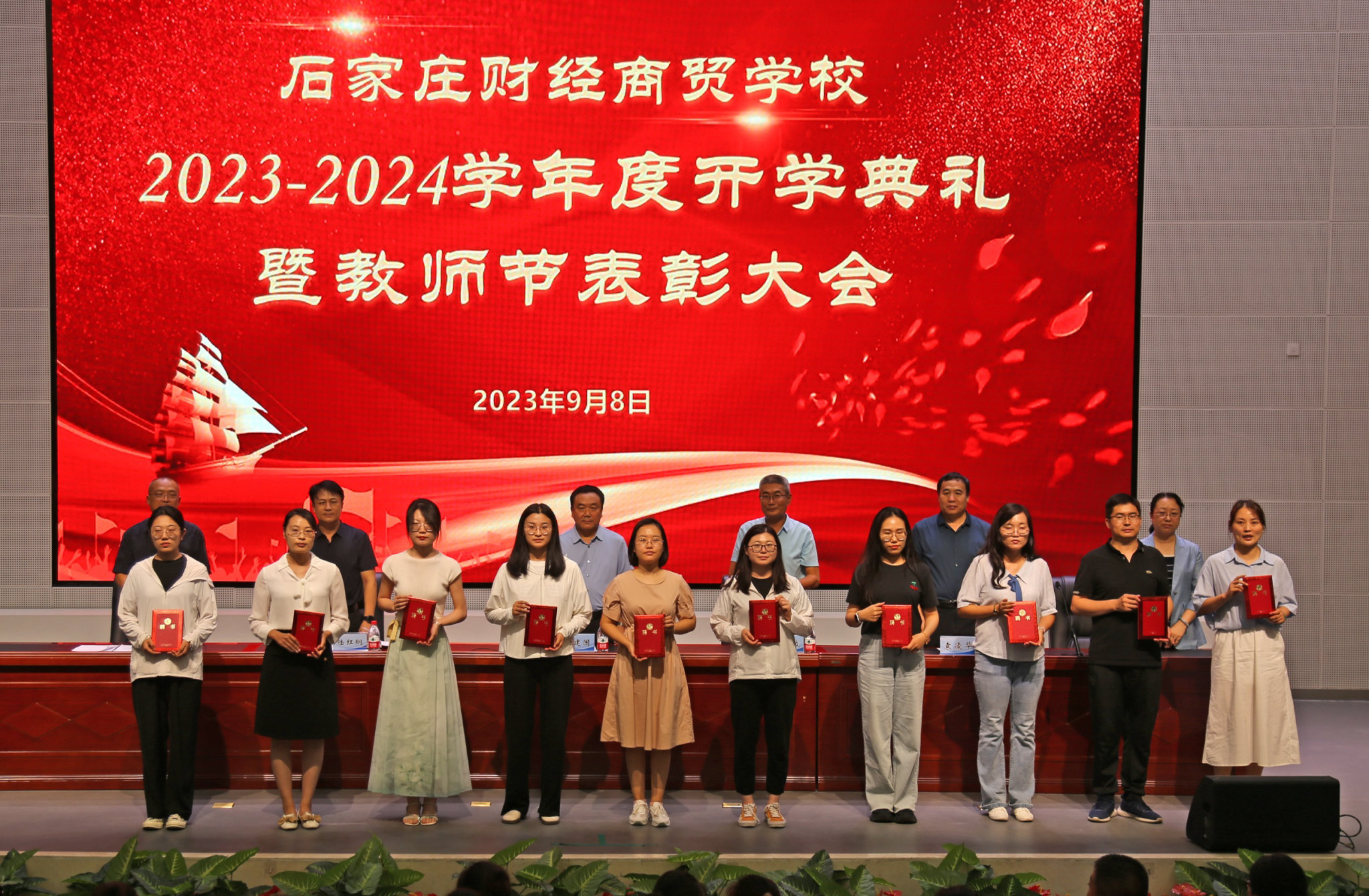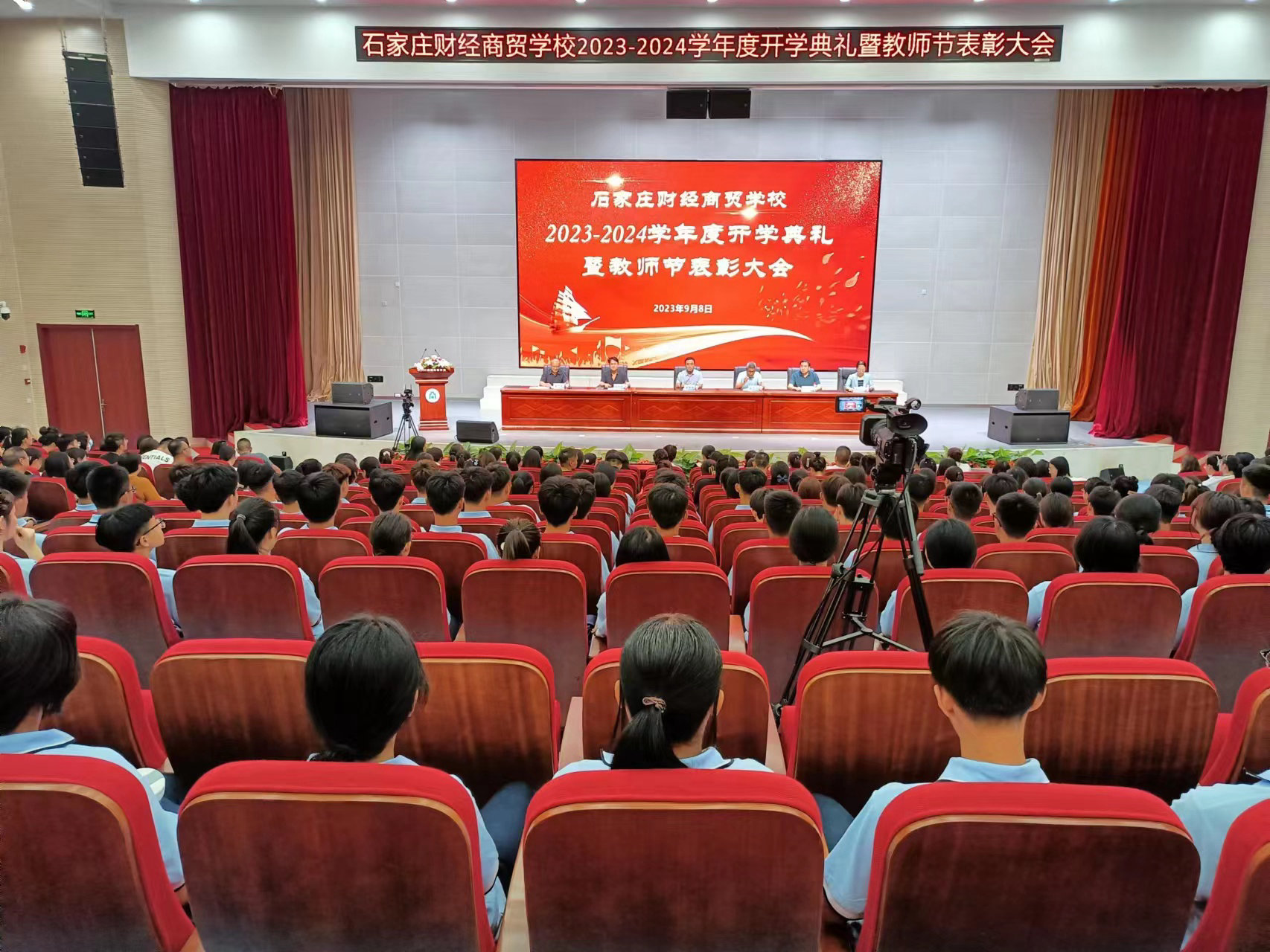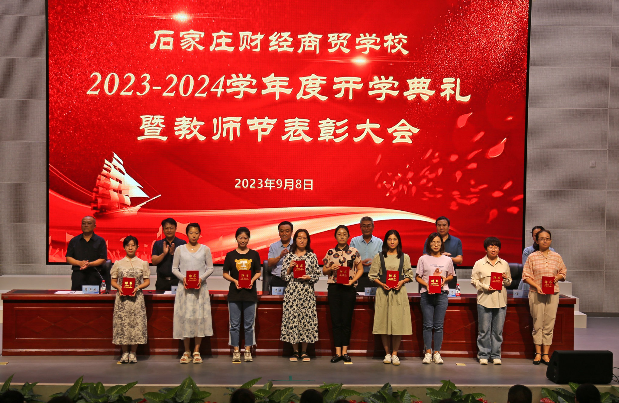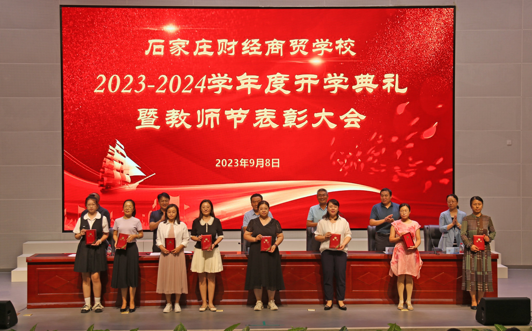 為大力營造尊師重教的良好氛圍,帶動廣大師生爭當先進,厚植師生家國情懷和服務社會的責任意識,9月8日下午,石家莊財經(jīng)商貿(mào)學校在財貿(mào)禮堂隆重舉行了2023-2024學年度開學典禮暨教師節(jié)表彰大會。
