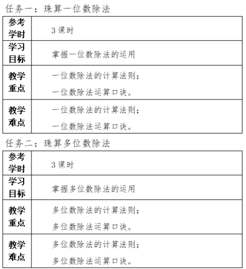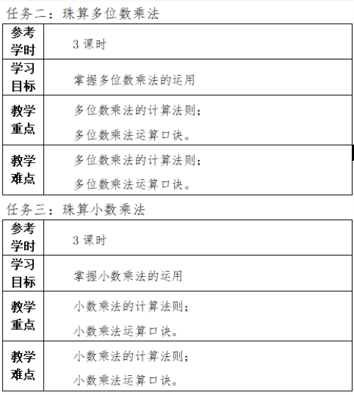 (2)掌握珠算加減法的基礎(chǔ)知識和算法,了解珠算乘除法的基礎(chǔ)知識和運算基本步驟。