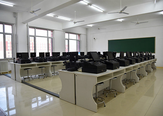 收銀實訓室用于學生收銀工作流程實訓。通過全仿真收銀實訓,可使財經(jīng)專業(yè)學生了解企業(yè)商品管理流程,掌握收銀操作技能。